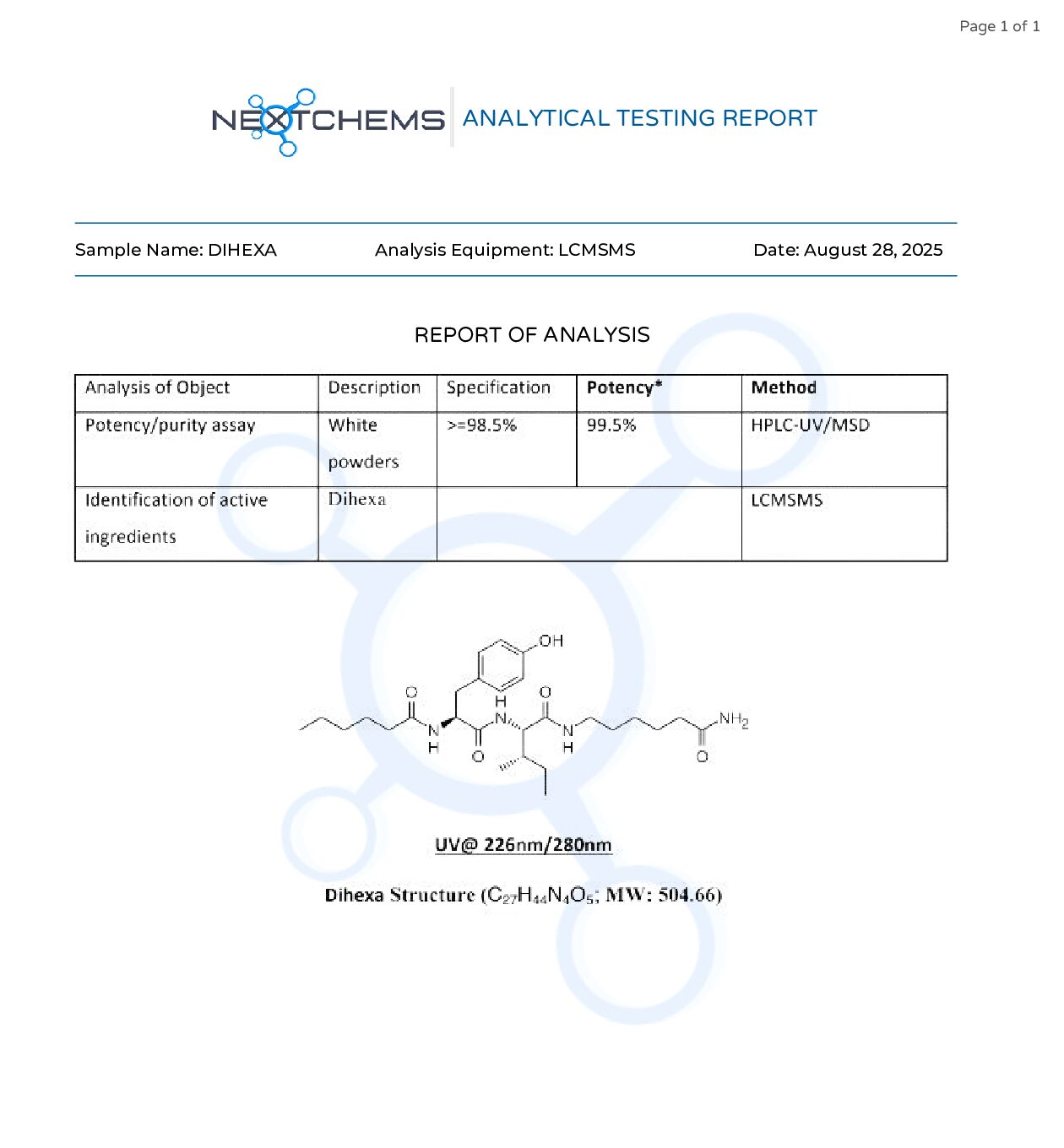 Other Names: dihexa 1401708-83-5 UNII-9WYX65A5C2 9WYX65A5C2 L-Isoleucinamide, N-(1-oxohexyl)-L-tyrosyl-N-(6-amino-6-oxohexyl)