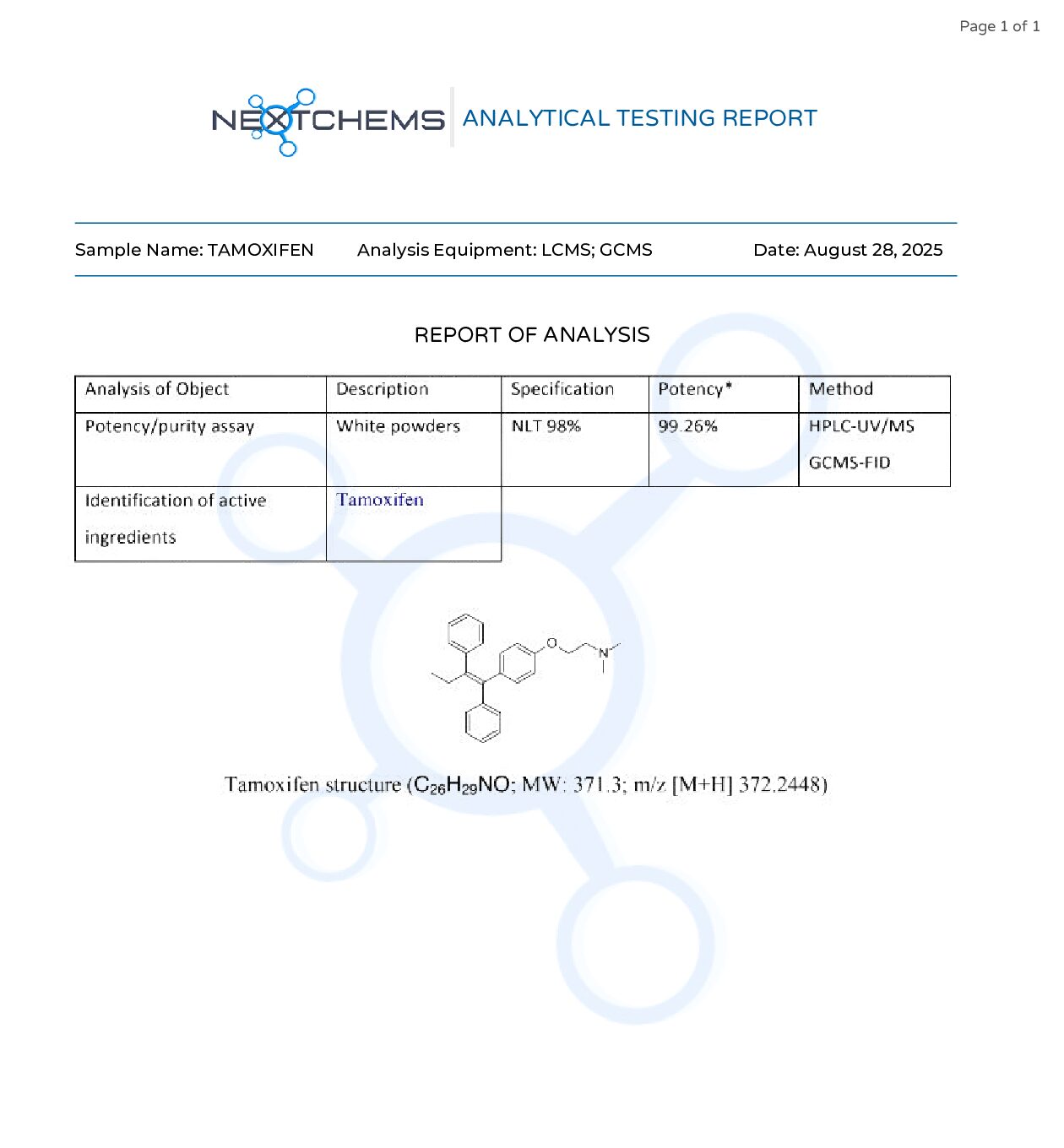 To ensure our products’ quality, we conduct regular HPLC tests on both raw powders and finished products. If you would like to have your purchased item evaluated at an HPLC-authorized testing facility, and the results are unsatisfactory, we will provide the following reimbursement: